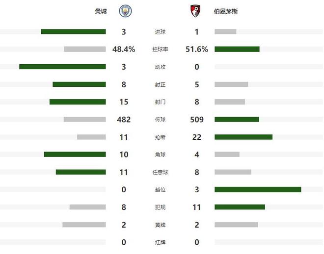 易邊再戰(zhàn),曼城攻勢(shì)不減,并且在第60分鐘徹底終結(jié)了勝負(fù)的懸念,福登前場(chǎng)帶球推進(jìn),牽制伯恩茅斯整條后防注意力后,將球分給了奧賴?yán)?,后者禁區(qū)內(nèi)低射建功,將全場(chǎng)比分定格為了3-1。